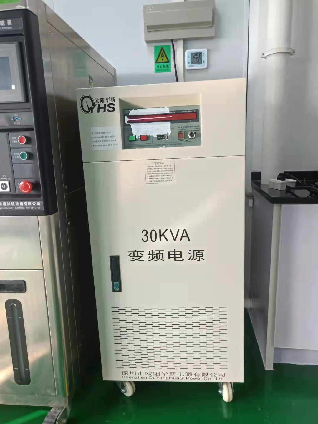欧阳华斯30KVA变频电源出货东莞,测试60HZ小家电产品。