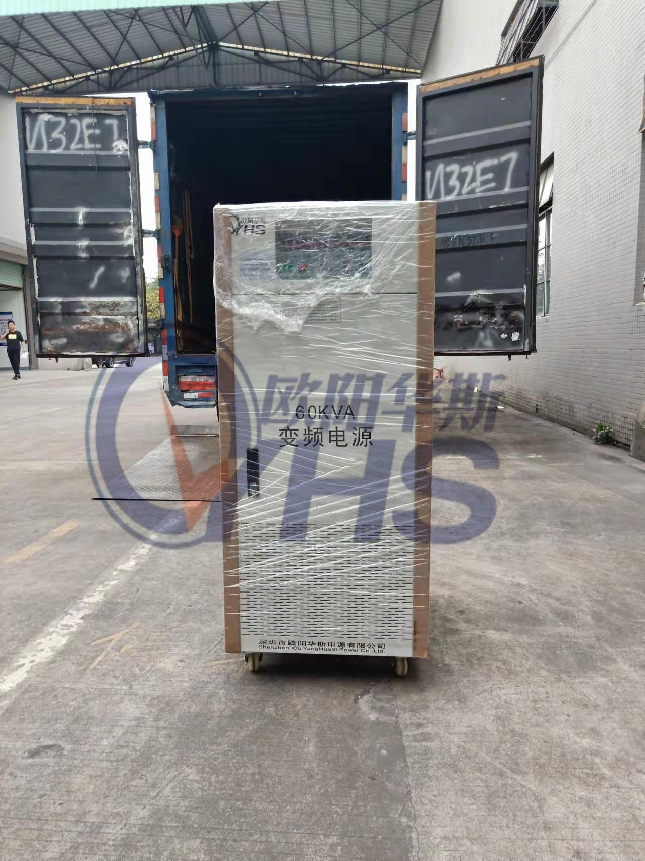 欧阳华斯60KVA变频电源出货广东,输出120V 60HZ,测试出口小家电产品。