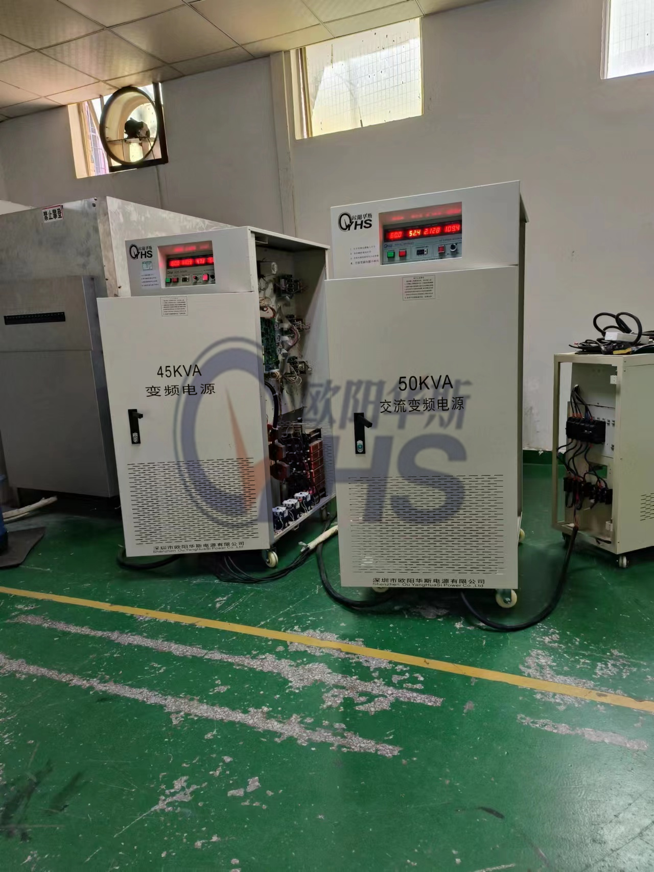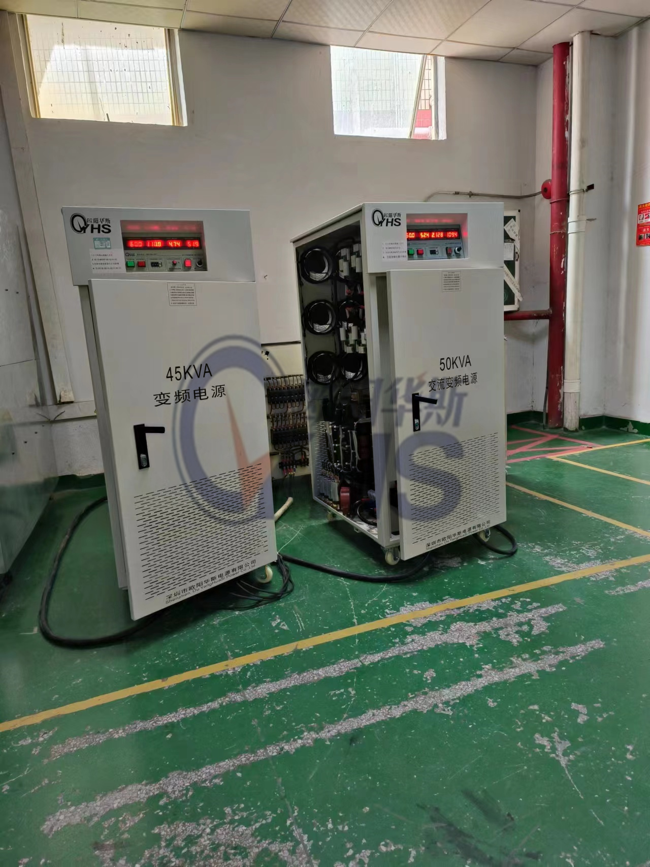 欧阳华斯50KVA变频电源出货佛山,输出电压0-650V连续可调,频率60HZ,50HZ可调