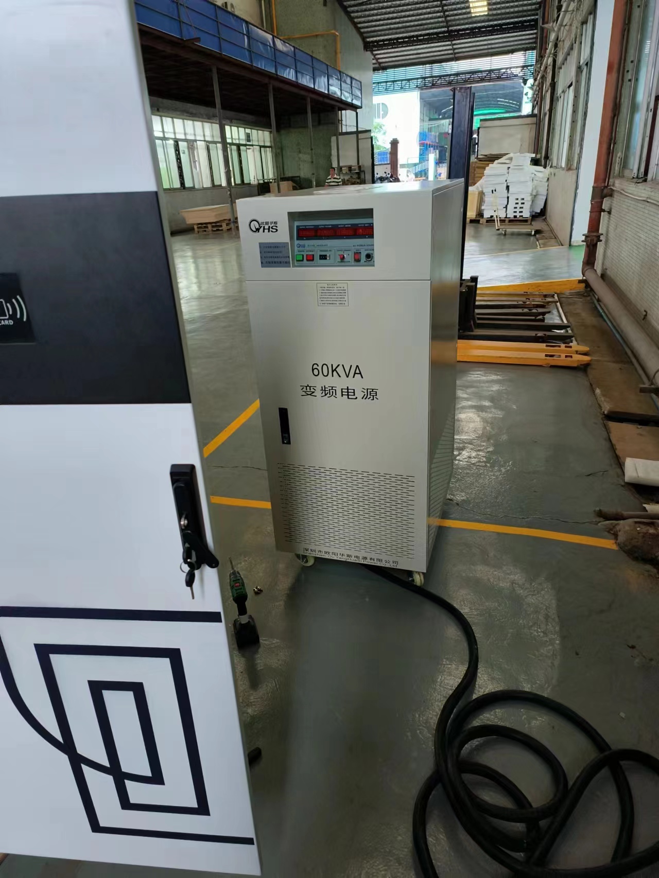 欧阳华斯三相60KVA变频电源出货广州新能源工厂,输出480V 60HZ,测试出口美国汽车充电桩。