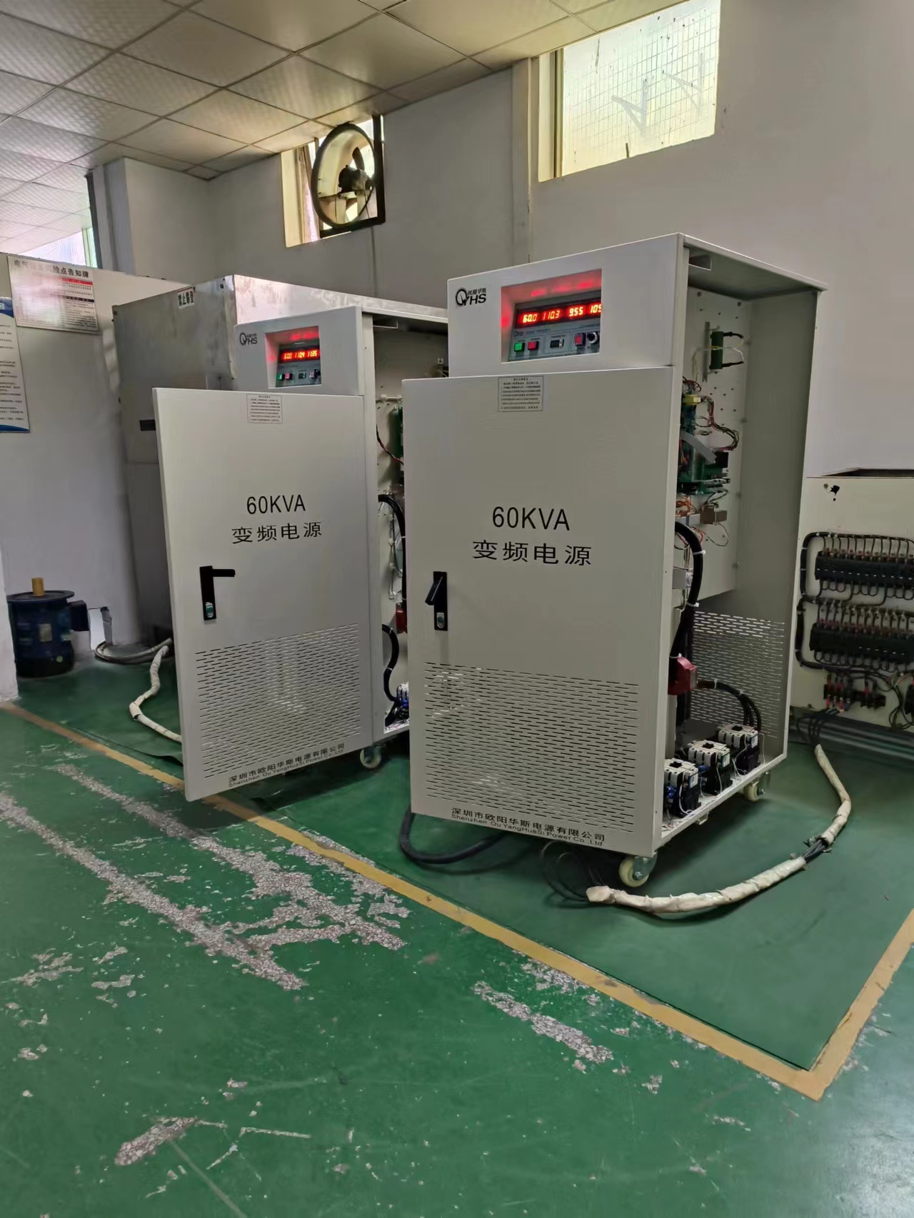 欧阳华斯2台60KVA变频电源出货广州花都,输出120V 60HZ,测试出口产品。