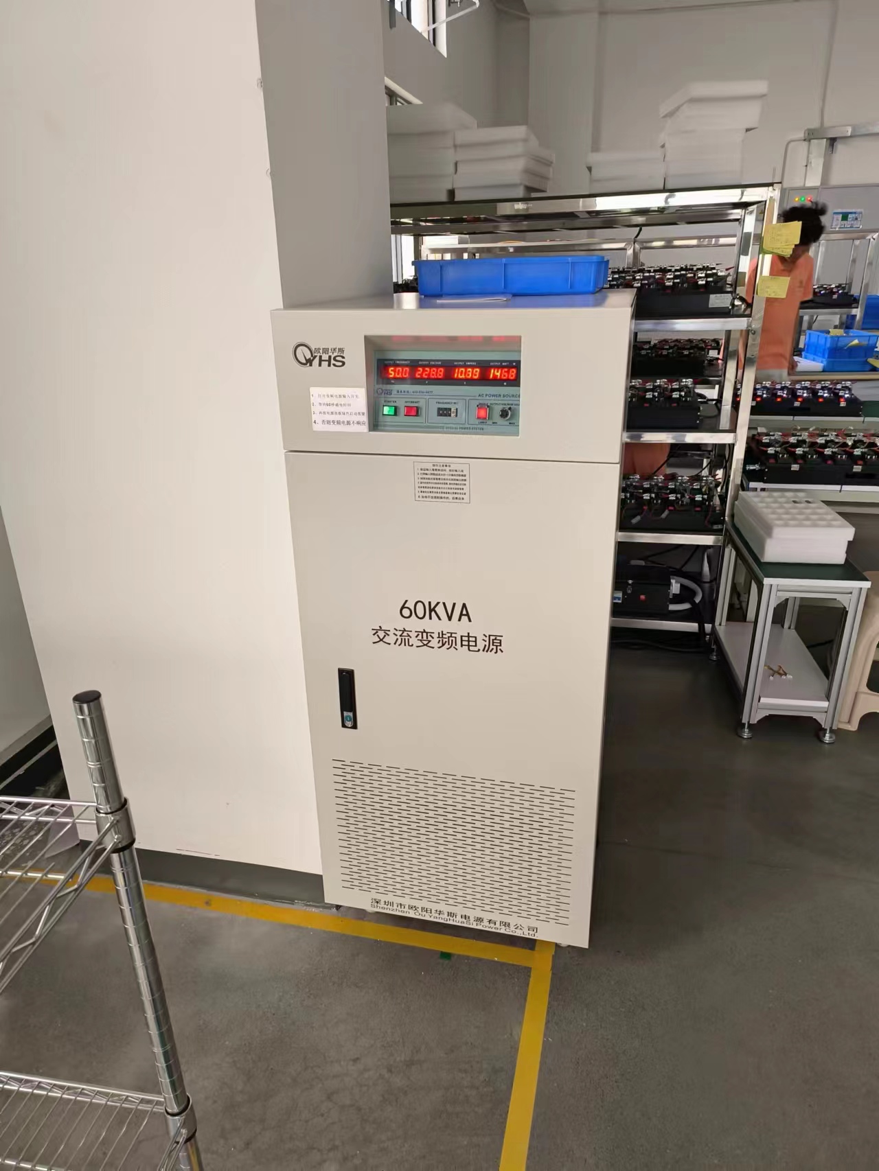 欧阳华斯60KVA变频电源出货佛山顺德 ,输出220V 50HZ,测试吹风筒马达。