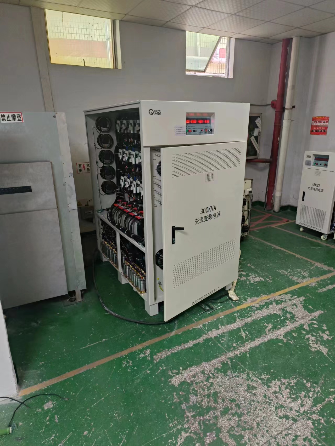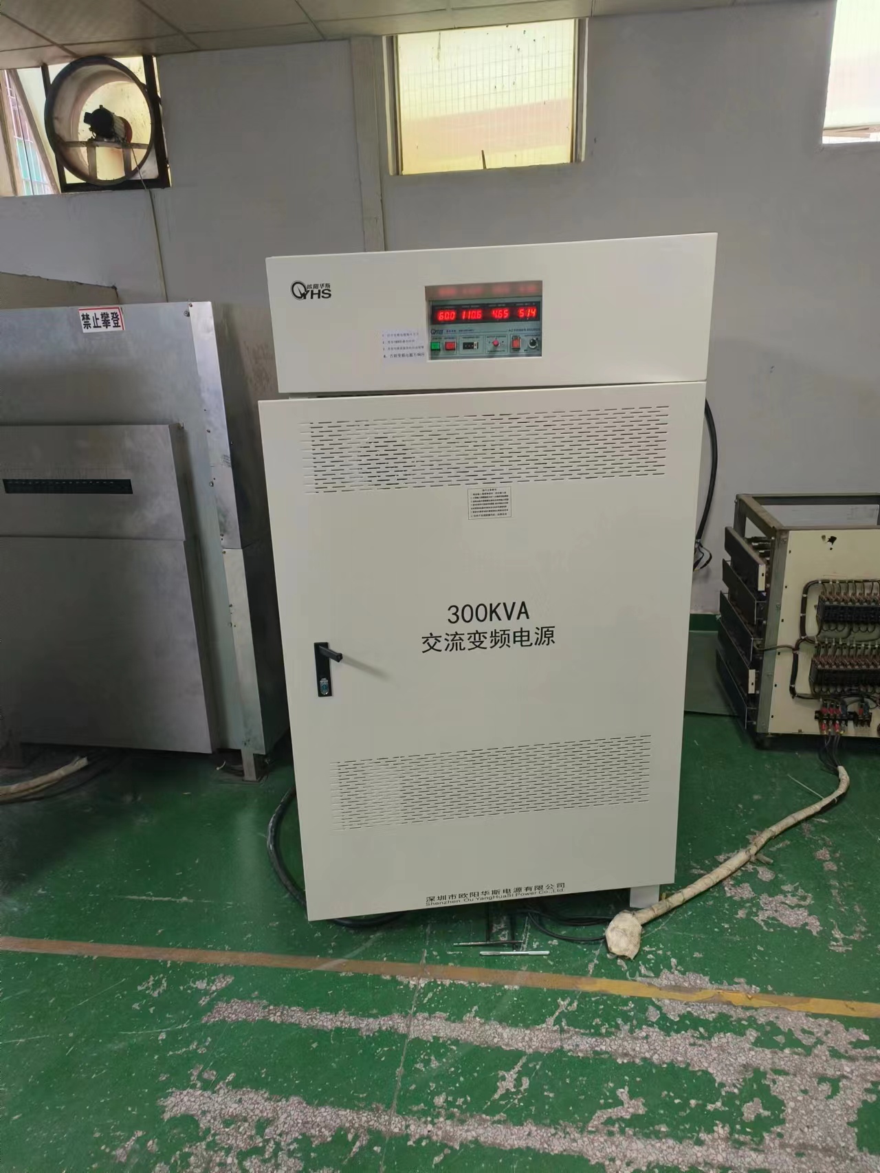 欧阳华斯三相300KVA变频电源出货河北涿州,输出440V60HZ,测试出口干燥设备。