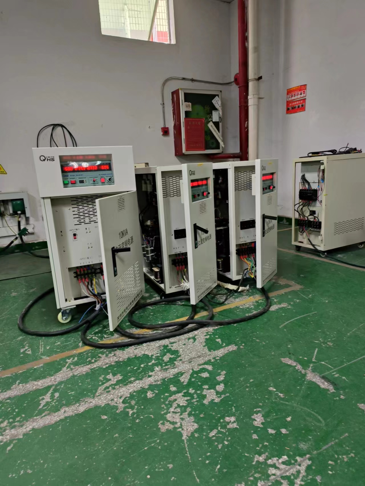 欧阳华斯10KVA变频电源出货美国,输出480V 60HZ,输出0-300V连续可调,频率40HZ-499.9HZ连续可调。