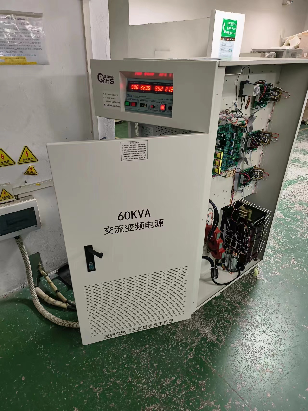 欧阳华斯三相60KVA变频电源出货台湾,输入380V 60HZ,输出380V 50HZ,带国内设备使用。