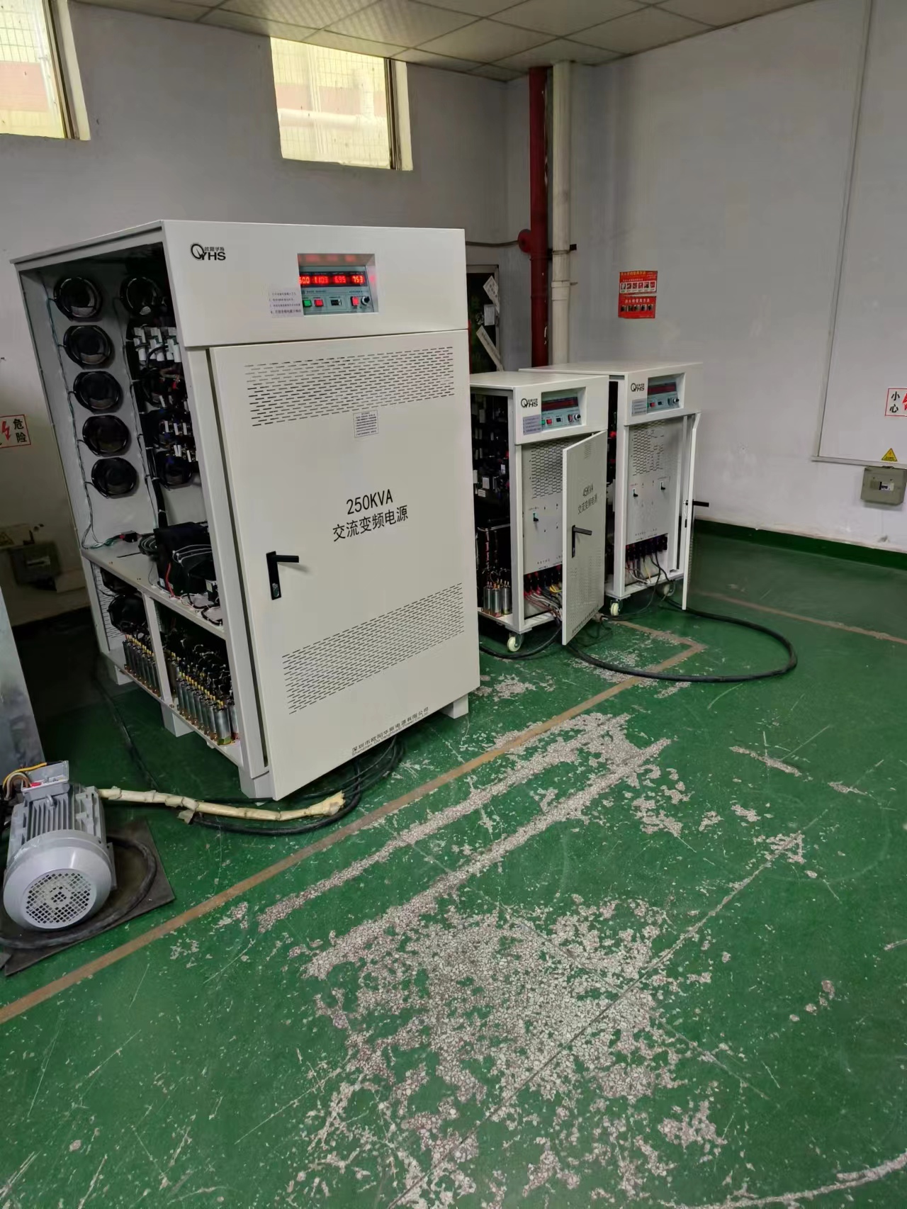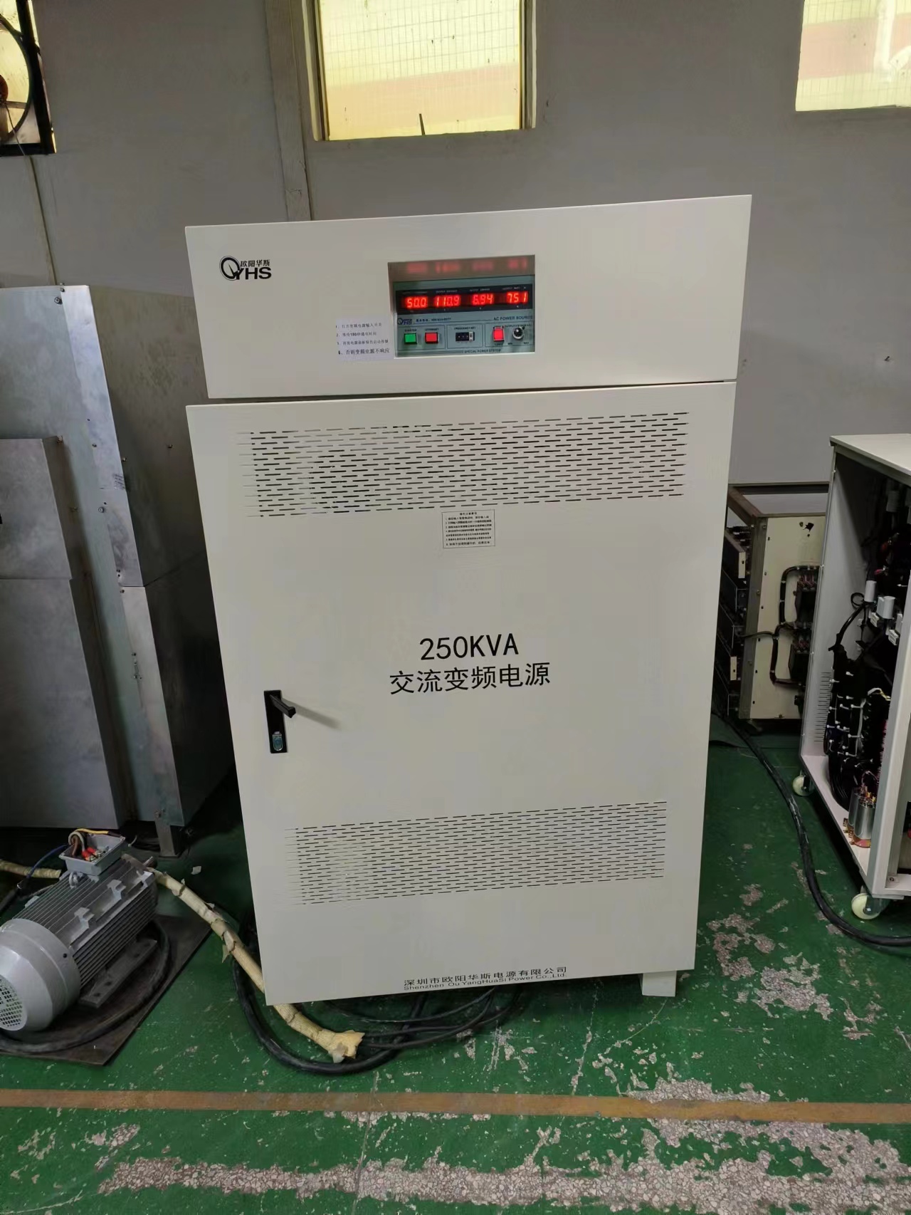 欧阳华斯250KVA变频电源出货东莞家电厂,输出220V 60HZ,测试老化吹风筒产品。