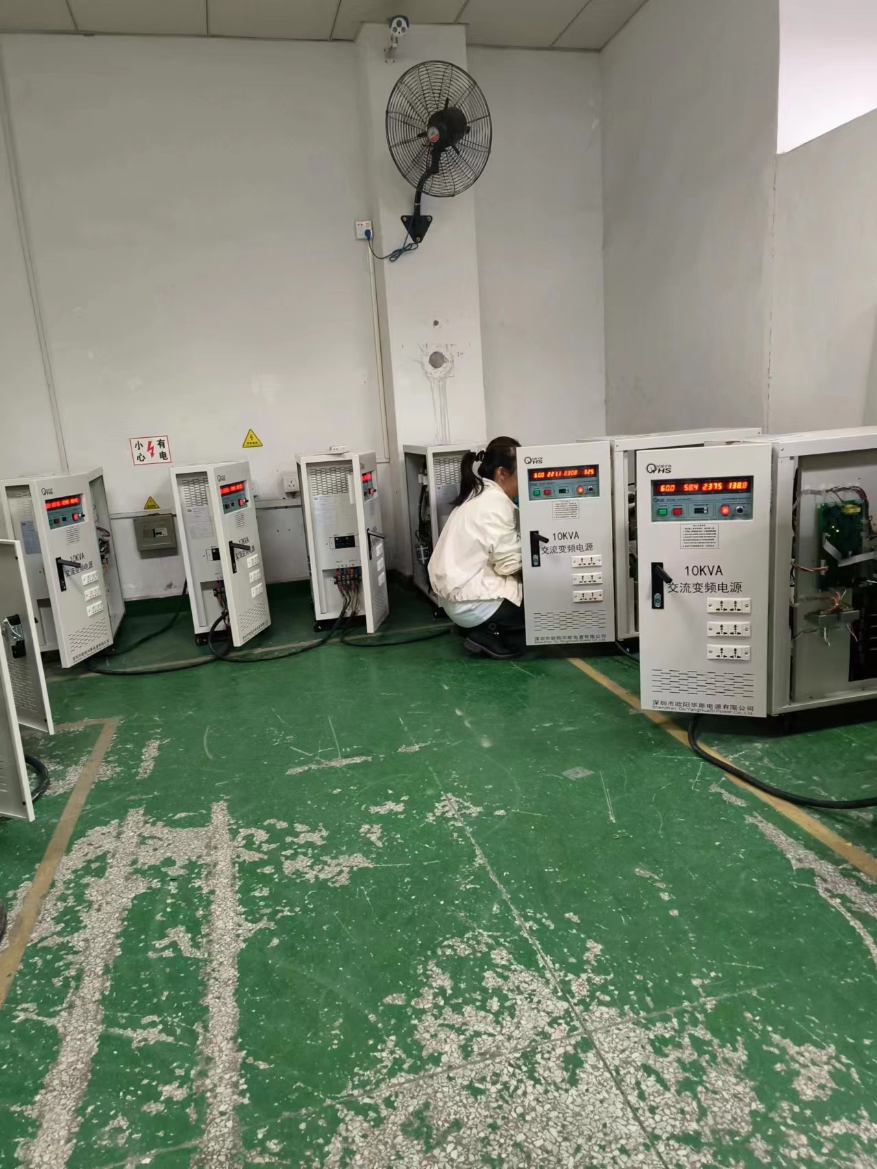 欧阳华斯10KVA变频电源老化测试小家电产品,输出110V 60HZ。
