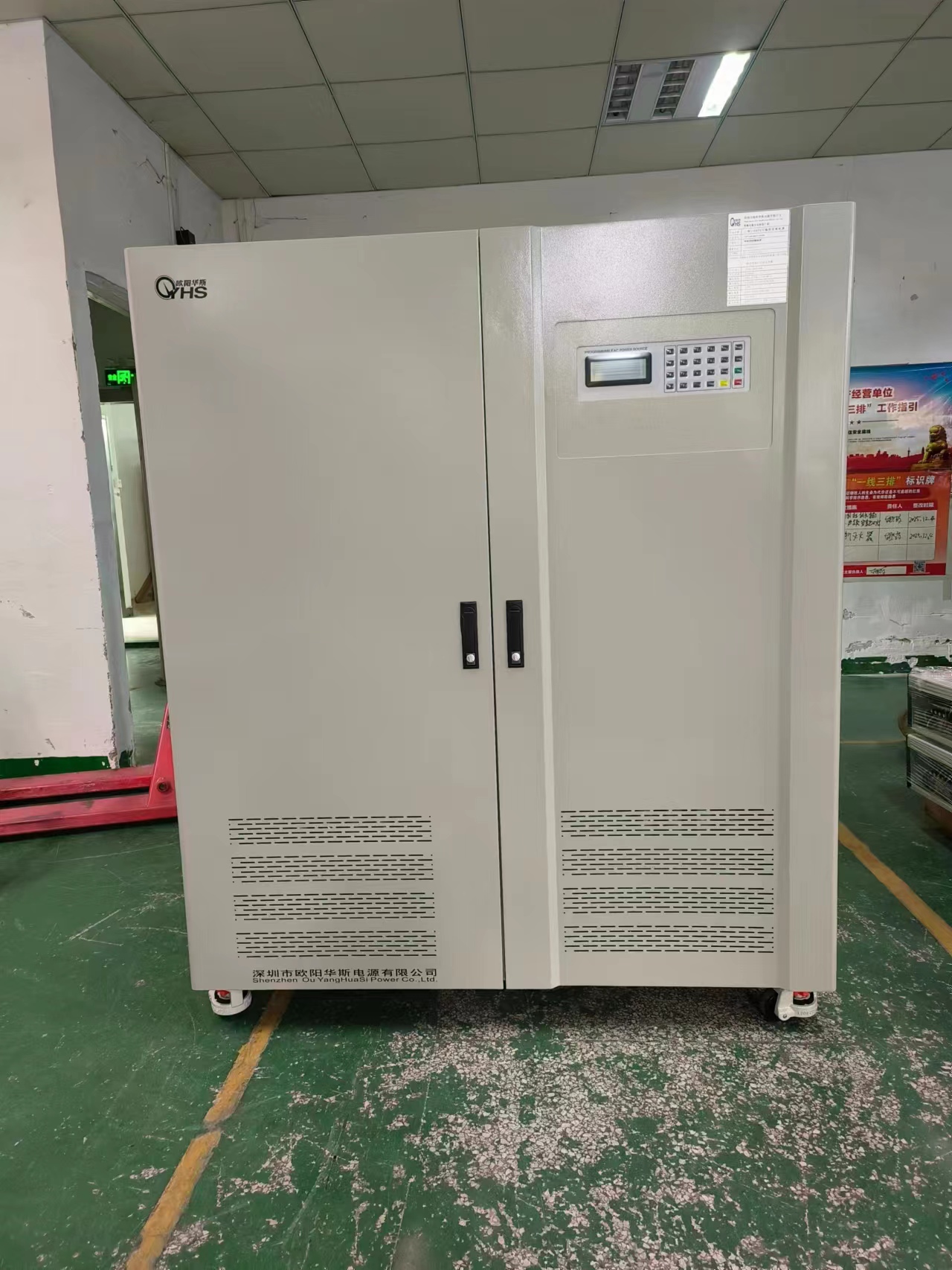 欧阳华斯三相150KVA可编程变频电源出货珠海,输出0-600V连续可调,频率45HZ-200HZ连续可调。