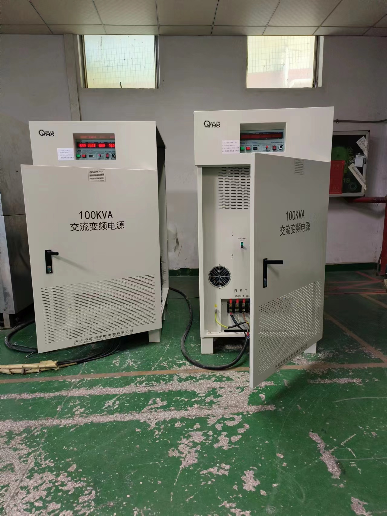 欧阳华斯三相100KVA变频电源老化测试家电产品,输出380 60HZ,测试家电产品。