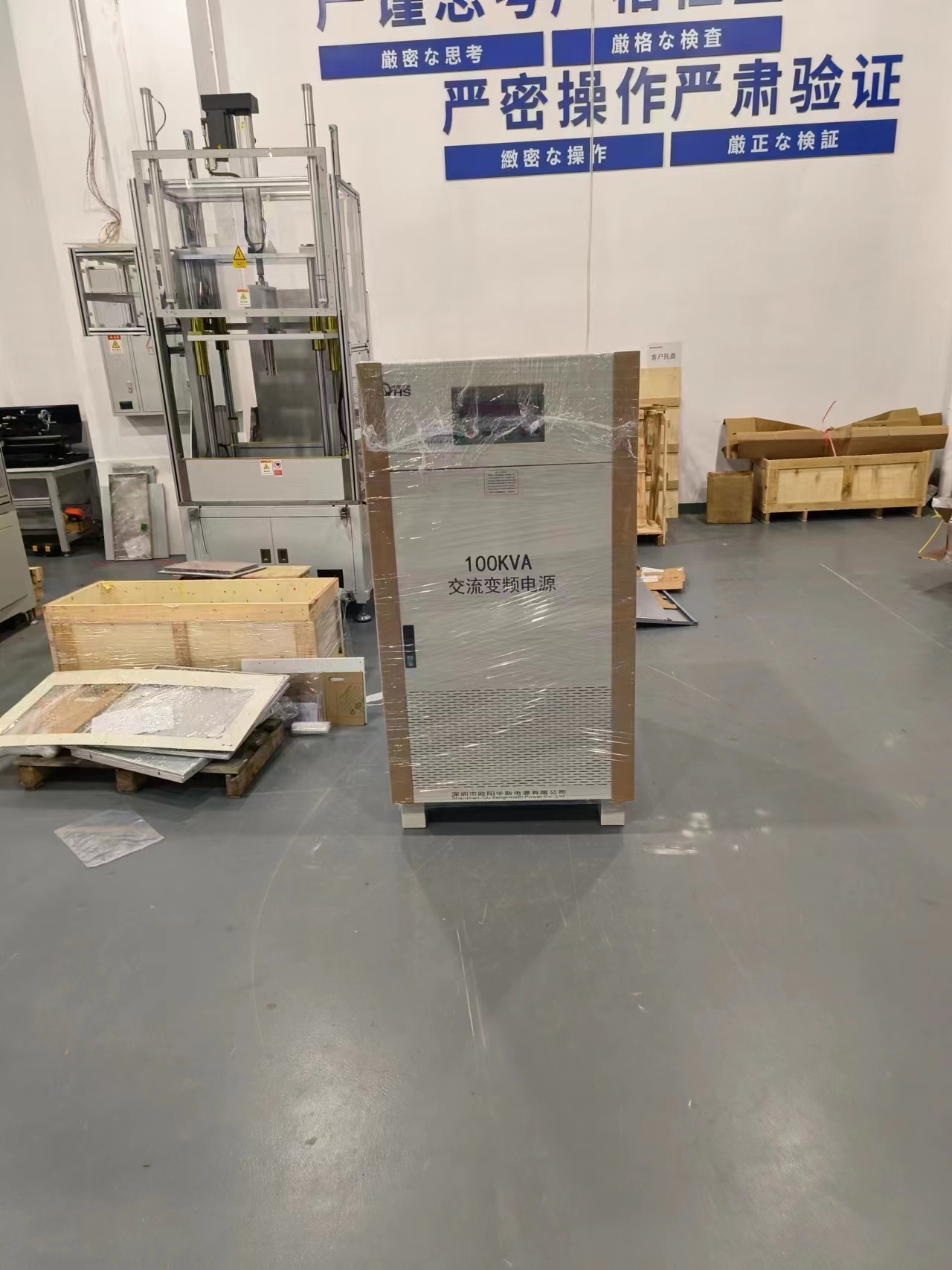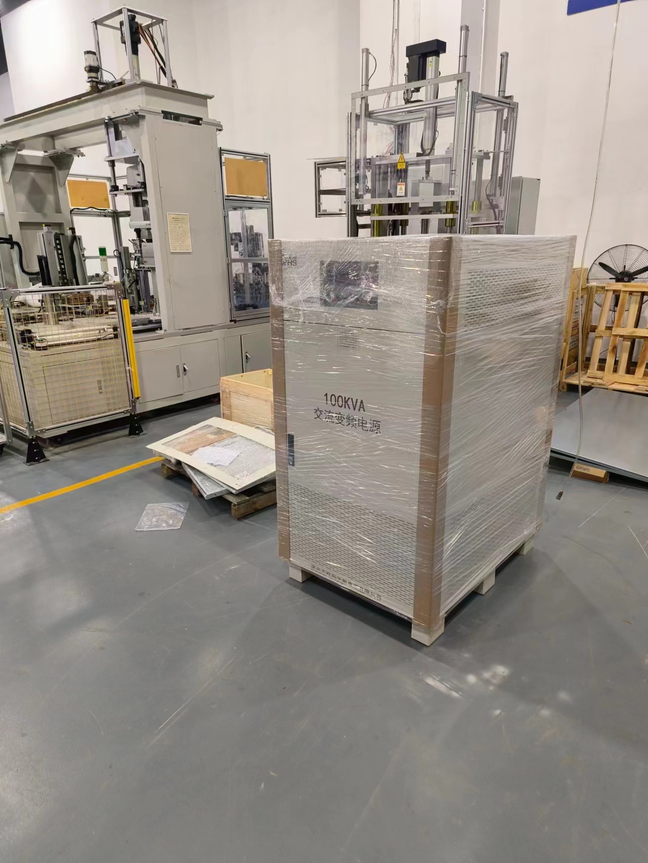 欧阳华斯三相100KVA变频电源出货深圳实验室,输出380V 50HZ,单相220V 50HZ,老化测试实验产品。