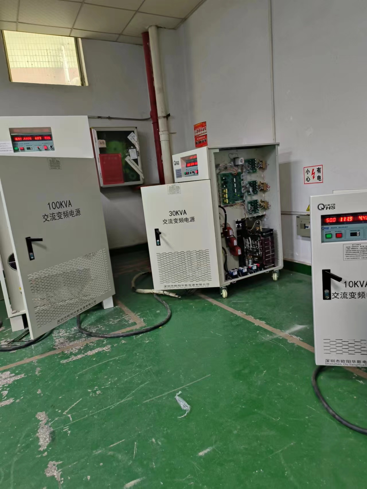 欧阳华斯三相30KVA变频电源,三相100KVA变频电源出货东莞设备厂,测试出口设备使用。