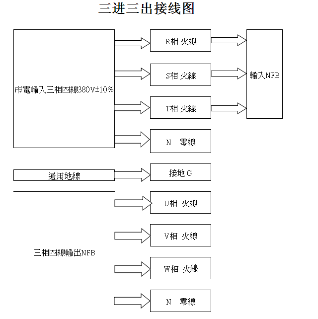 三相系列变频电源接线方法如图