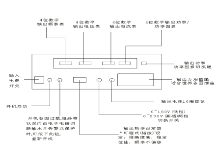 50HZ转60HZ变频电源,单相变频电源,单相1000VA变频电源面板操作说明图